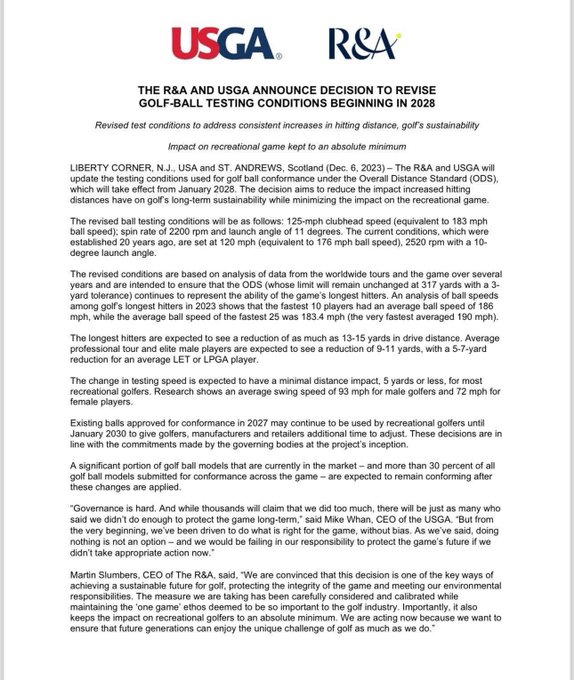 In a move that is set to reshape the landscape of professional and amateur golf, the United States Golf Association (USGA), in collaboration with the R&A, has officially announced a significant rollback on the distance golf balls can travel. This decision, which concludes a long-running debate within the sport, is aimed at curtailing the ever-increasing hitting distances that have become a dominant aspect of modern golf.